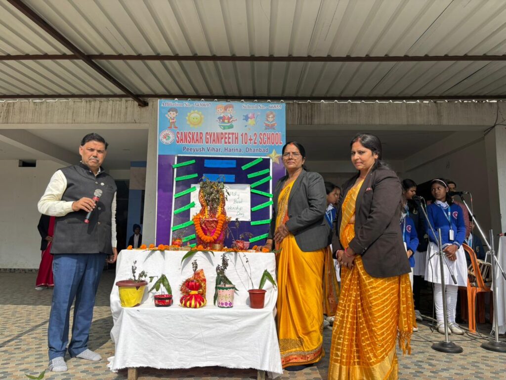 आज दिनांक 24/12/2025 को संस्कार ज्ञानपीठ 10+2 विद्यालय, पीयूष विहार हरिना में तुलसी पूजन उत्सव हर्षोल्लास एवं श्रद्धा के साथ मनाया गया। कार्यक्रम का शुभारंभ ज्ञानपीठ के निदेशक डॉ. मुकेश कुमार राय एवं श्रीमती नीरजा राय द्वारा दीप प्रज्ज्वलन कर किया गया।